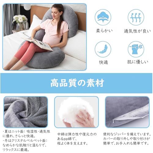 C型抱き枕 マタニティ 授乳クッション 横向き寝 背もたれ 抱きまくら 大きい ふわふわ 取り外し可能カバー付き 妊婦 プレゼント 人気 (ねずみいろ)☆彡