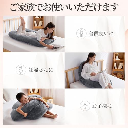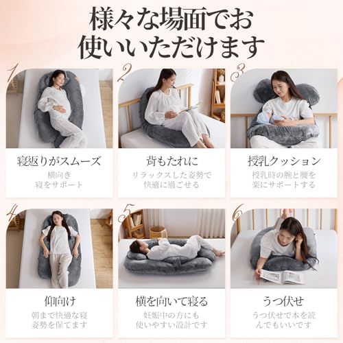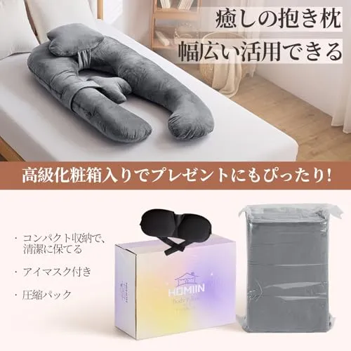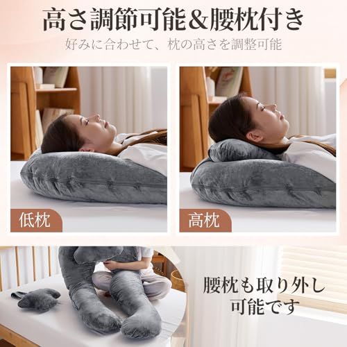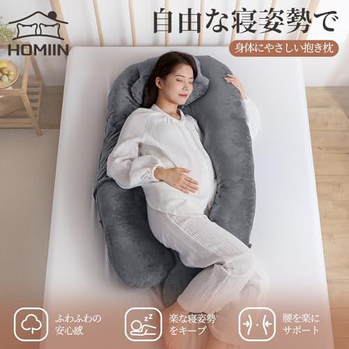 抱き枕 妊婦 だきまくら 全身枕 Homiin 授乳クッション 男女兼用 多機能u字型 全身を包み込む抱き枕 ピロー腰クッション付き 快眠 グッズランキング 背もたれ 体圧分散 高さ調整可 カバー洗える(グレー)☆彡