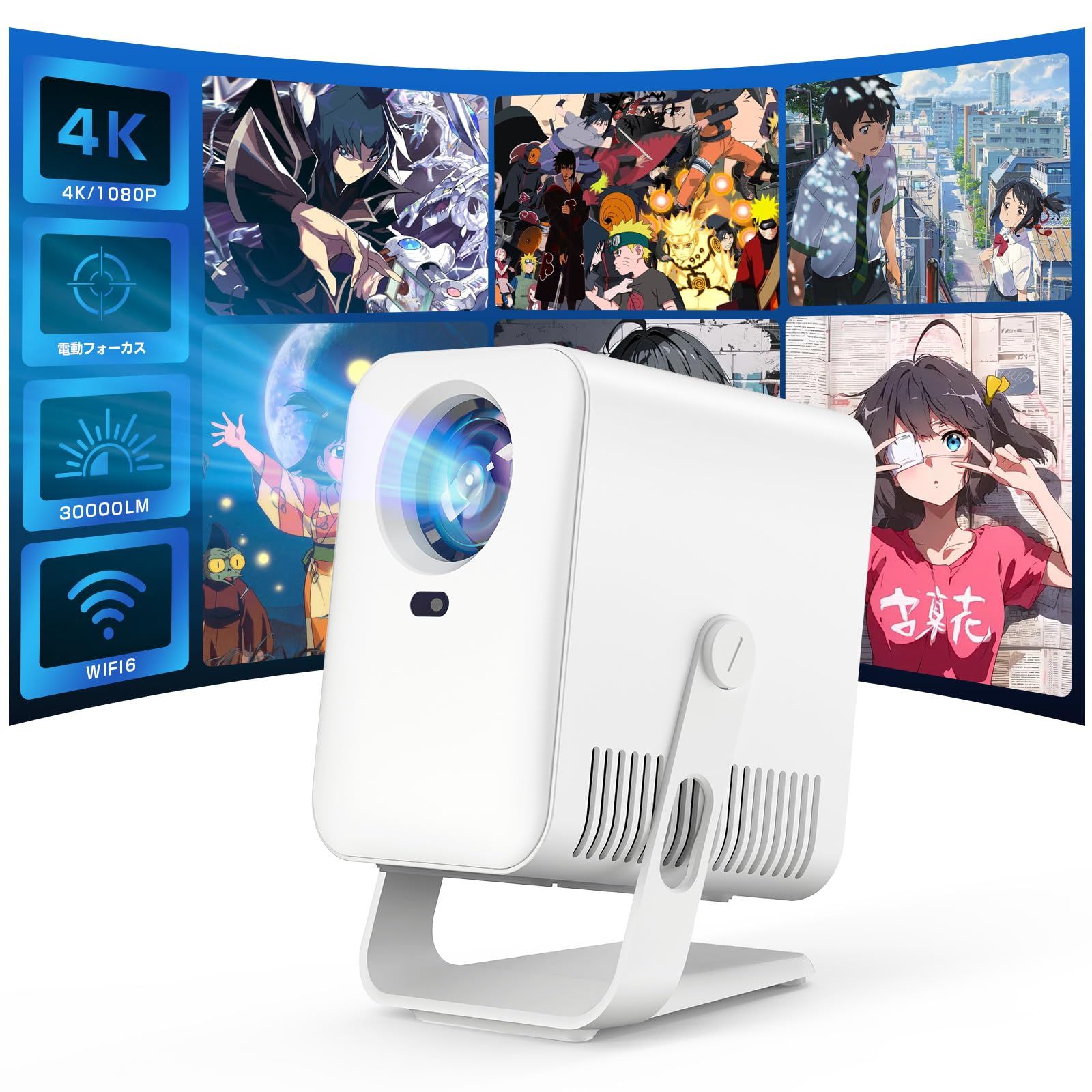 ◆【2026最新完全密閉型&360°回転可能】プロジェクター 天井投影 家庭用 小型 30000lm 1080P WIFI6 高輝度 10W HiFiスピーカー内蔵 ぷろじえくたー 50%ズーム機能 短焦点 大画面 軽量 スクリーンアジャスト/障害物自動回避/