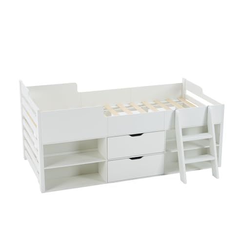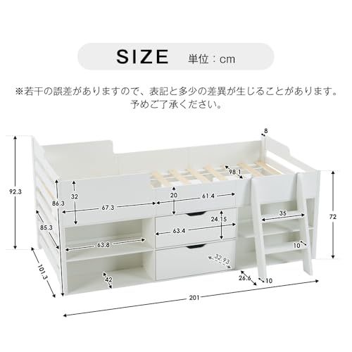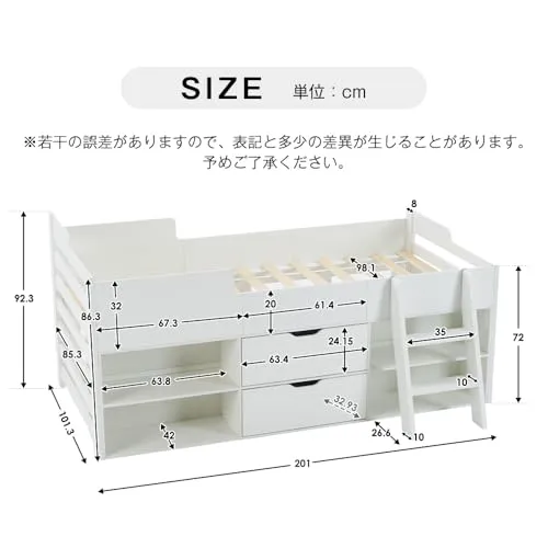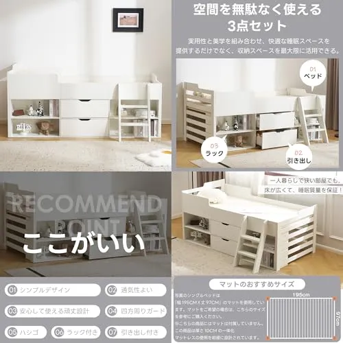 Chic ZONE システムベッド 収納付きベッド シングル 引き出し付き 子供部屋・大人用 天然パイン材 頑丈 一人暮らし 北欧風 (Aタイプ)☆彡