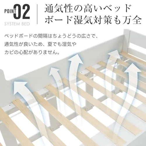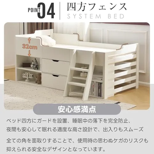 【四方フェンス】安心感満点ベッド四方にガードを設置、睡眠中の落下を完全防止、夜間も安心して眠れる適度な高さ設計で、出入りもスムーズ。全ての角を面取りすることで、使用時の思わぬケガのリスクも抑えられる安全なデザインとなっています。