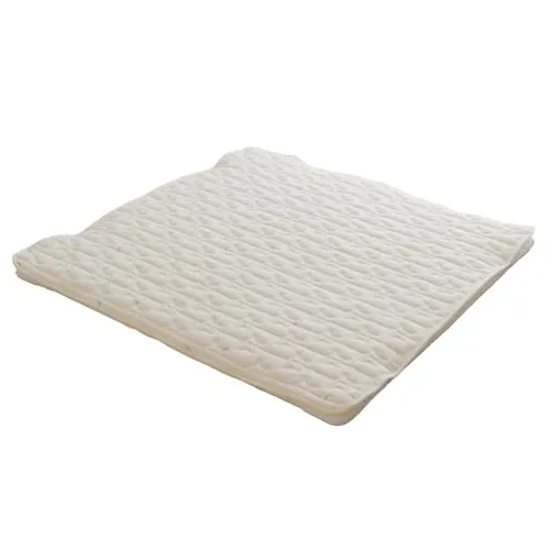 裏面に細かいボンディングの滑り止め加工・四隅ゴムタイプ、洗濯機Okの天竺ニットの専用敷きパッド付で汚れも安心、リビングなどでも使いやすい正方形マット