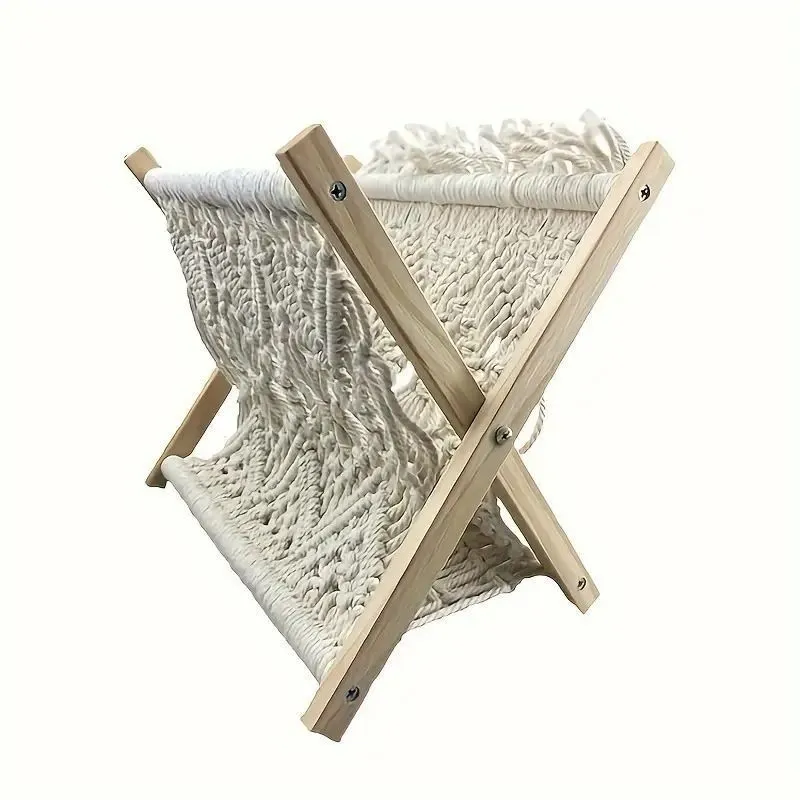 マガジンラック マガジンホルダー スタンディングバスケット ブックホルダー 収納ラック モロッコ風 コットンロープ 木製フレーム 編み込み 折りたたみ式 ポータブル 雑誌 新聞 郵便物 本 リモコン アルバム モダン お洒落 ナチュラル 素朴 牧歌的 シンプル