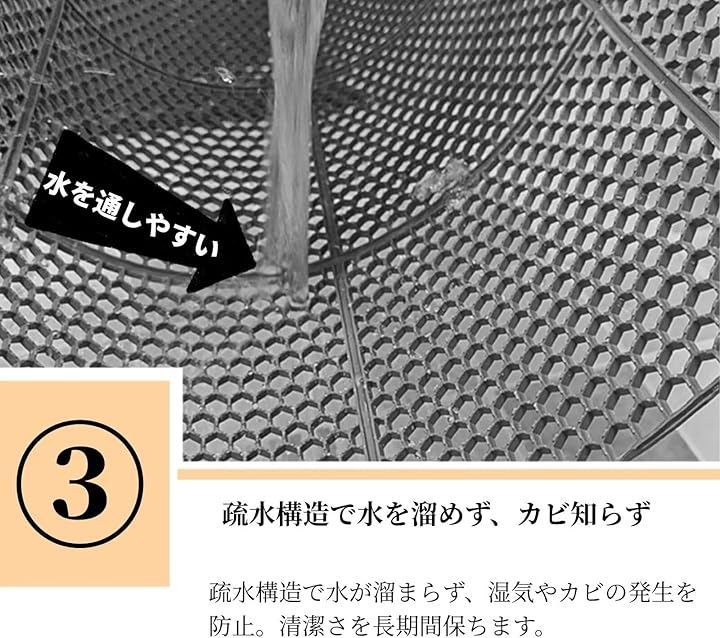 疏水構造で水が溜まらず、湿気やカビの発生を防止します。
