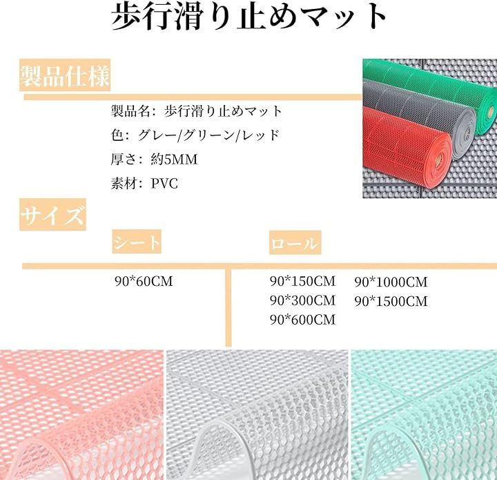 MEMETARO 歩行滑り止めマット 玄関マット ゴムマット 有孔マット 業務用 雪道 屋外 台風 災害 転倒防止 泥落とし 駐車場 プール (グレー, 90x150CM)