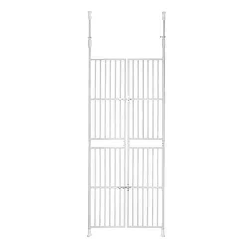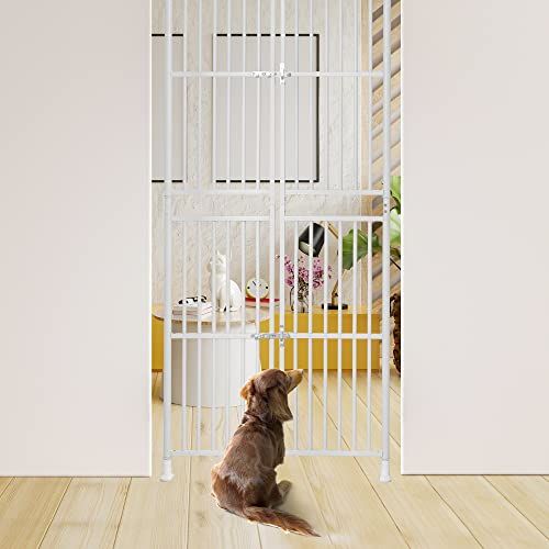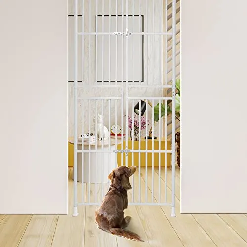 ペットドア 突っ張り式 高さ調節可能191-255cm 幅85-91cm対応 スチールゲート ベビーゲート ハイタイプ 猫 脱走防止 柵 室内用 フェンス 多頭飼い用 飛び出し防止 玄関 階段 ペットケージ 新生活 ホワイト☆彡