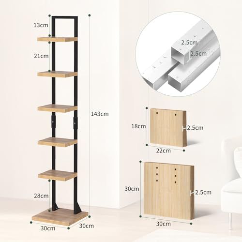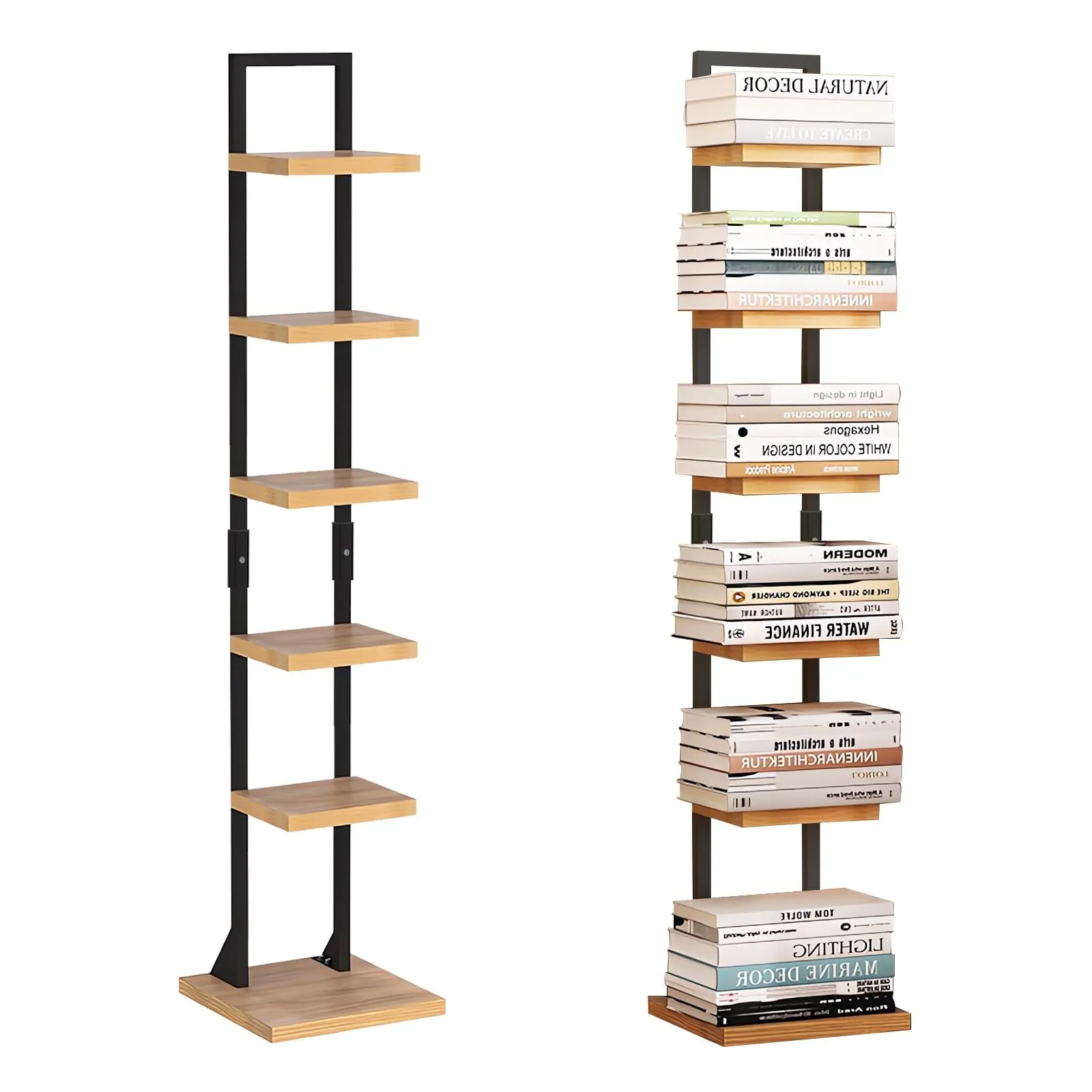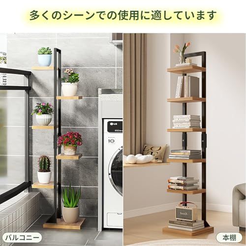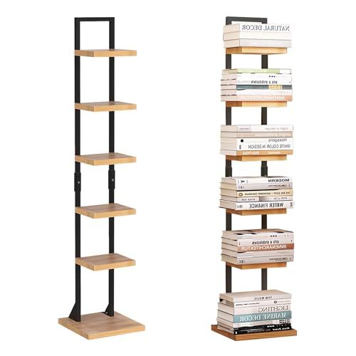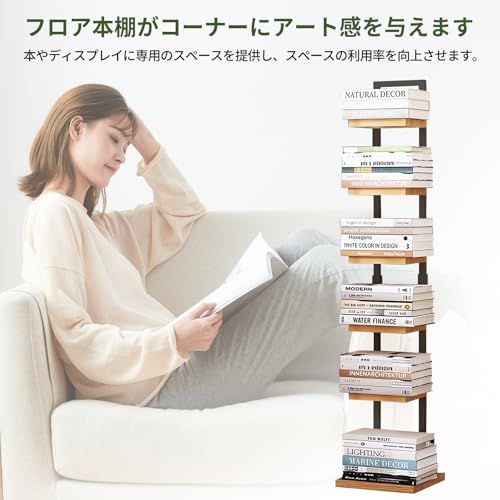 D★本棚 ブックタワー ブックシェルフ タワー 大容量 収納棚 隙間収納 収納ラック オープンラック シェルフ 木製棚板 スチールフレーム 本棚 おしゃれ 省スペース 組立簡単 書棚 インテリア (黒いフレーム, 6段)