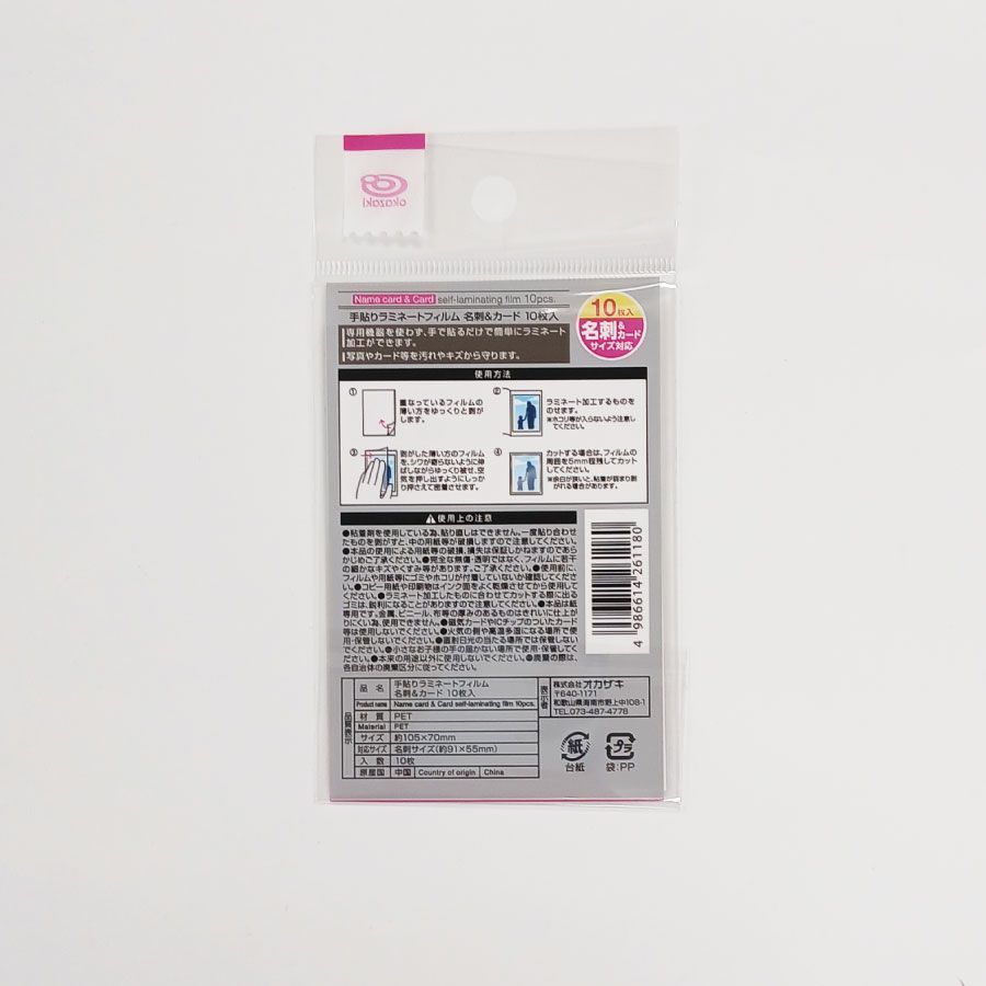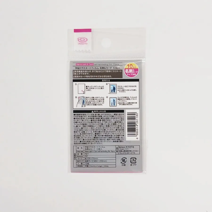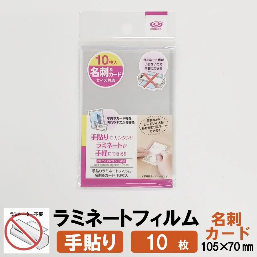 手貼りラミネートフィルム 名刺サイズ対応 105×70mm 10枚入
