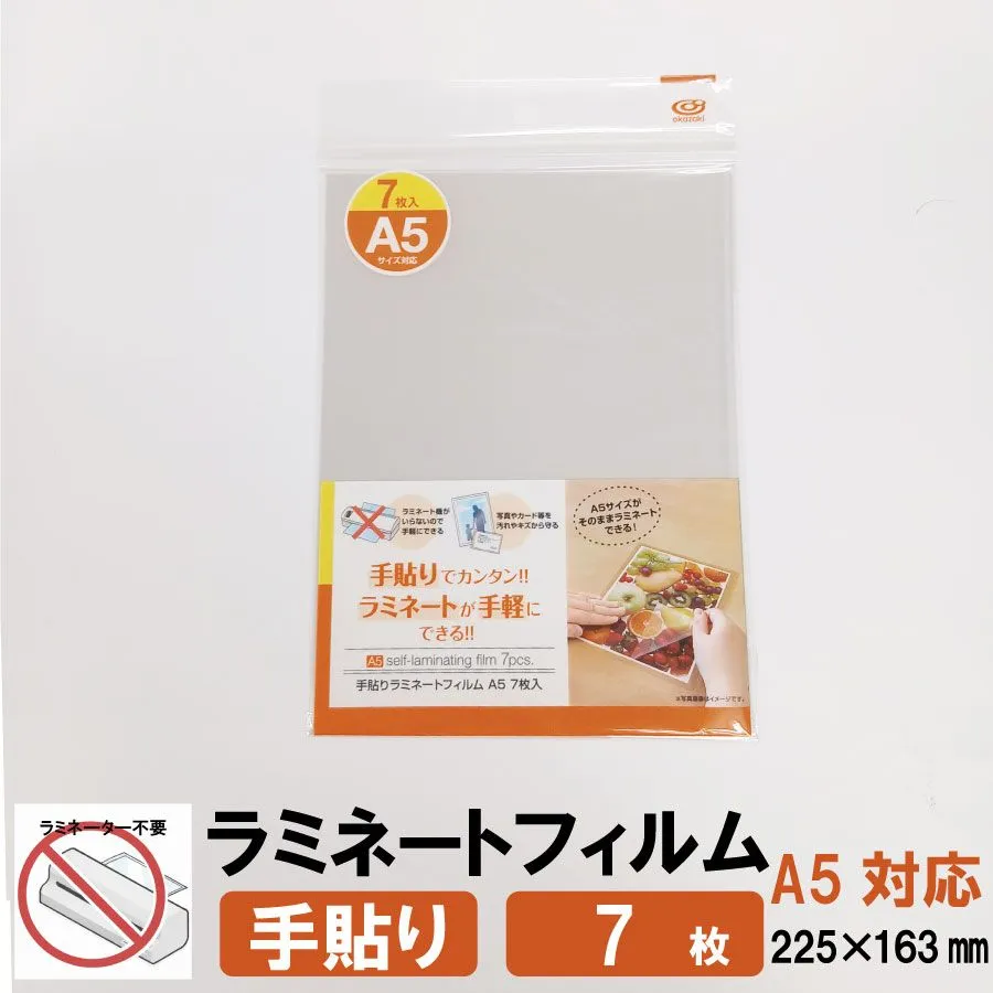 手貼りラミネートフィルム A5サイズ対応 225×163mm 7枚入