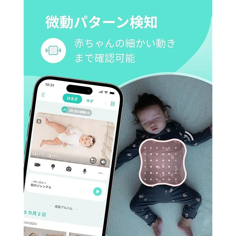 【商品説明】 ベビーセンサーパッドは、Cubo Ai Plusとペアリングする必要があります。AIカメラとモーション技術の連動により、状況によって適切な通知を発信します。 赤ちゃんにとって快適、そして安全。非着装型のベビーセンサーパッドは、赤ちゃんの微動パターンをリアルタイムで感知。