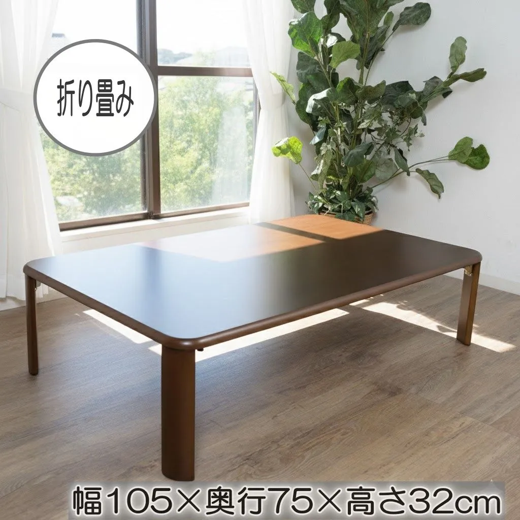 送料無料! E 天然木突板の温もり。折りたたみローテーブル ブラウン 105×75cm【完成品】 FF17766