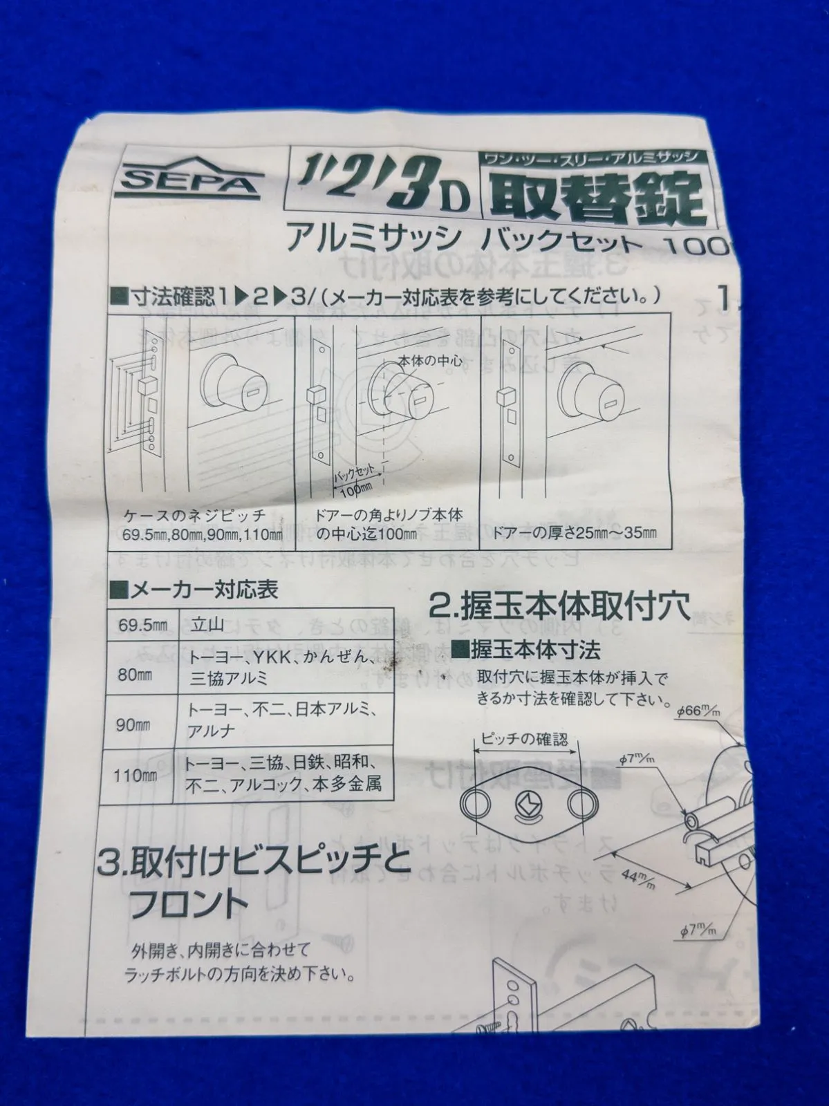 ■商品情報 ・品名:SEPA CW-123D ディンプル取替錠 玄関錠