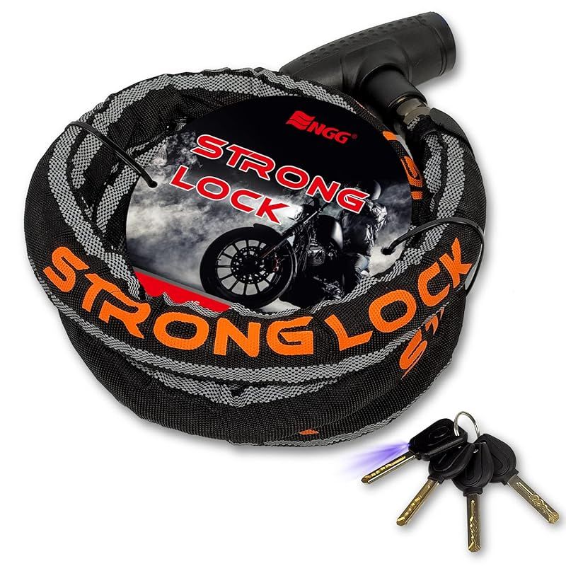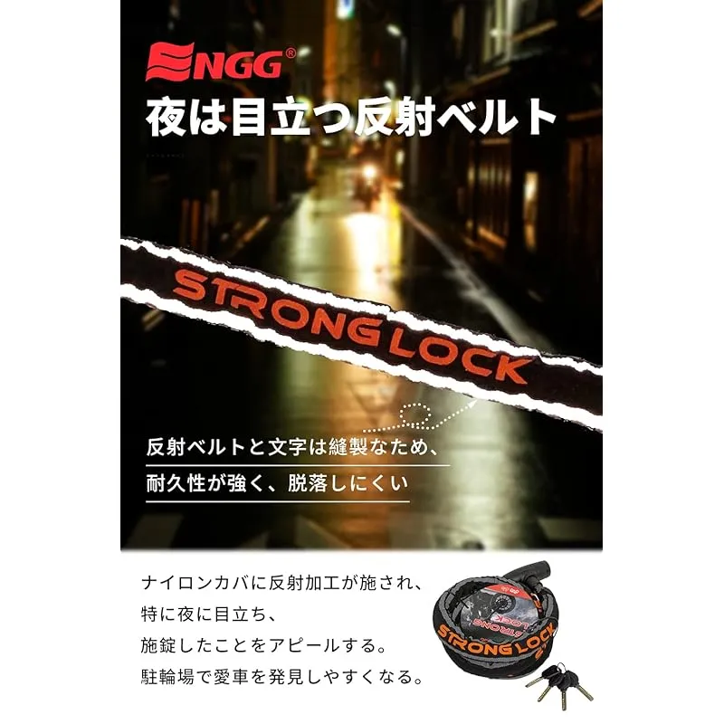 ENGG バイクロック スチールリンクロック 直径24mmx1800mm【ストロングロックVer2.0】 ワイヤーロック 二重防塵 ウェーブキー4本付き LEDライト付 1800mm 頑丈 盗難防止 オートバイ 原付 チェーンロック 1
