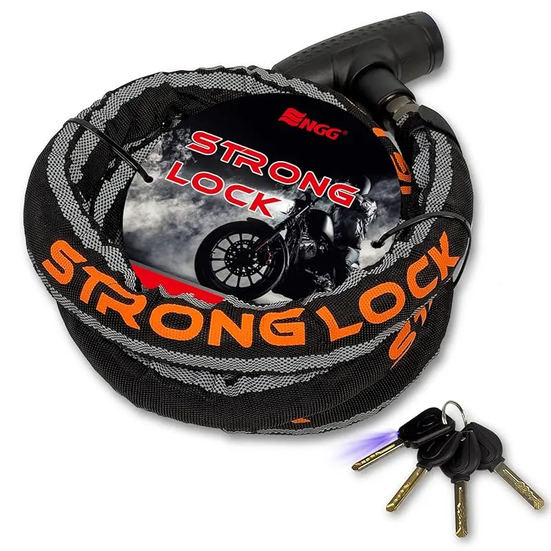 【ストロングロックVer2.0】 スチールリンクロック 二重防塵 ウェーブキー4本付き LEDライト付 頑丈 盗難防止 オートバイ 原付 チェーンロック
