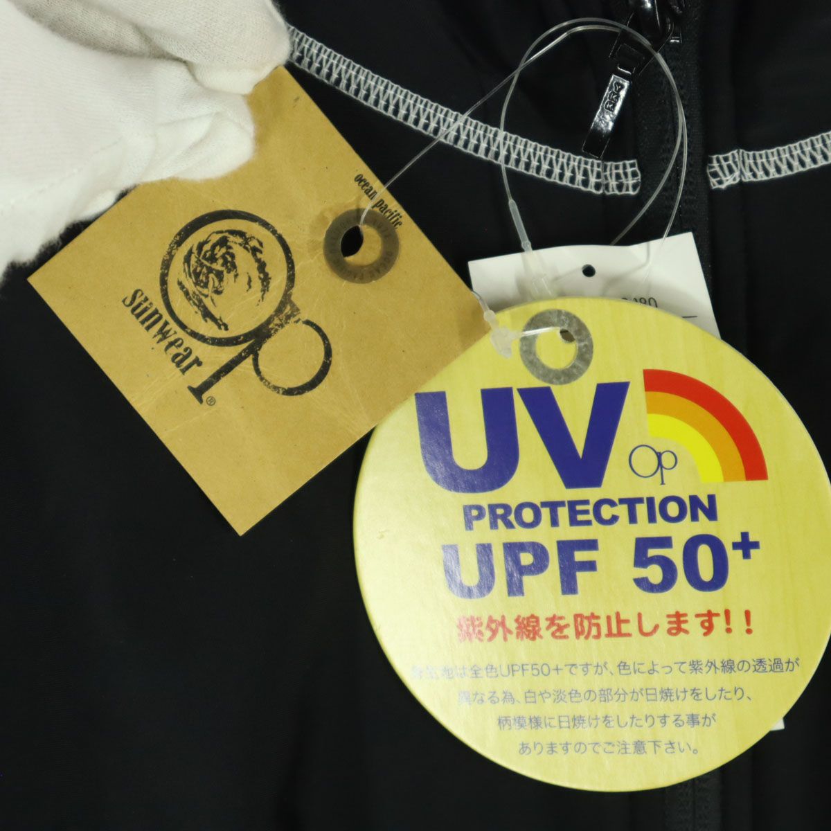 未使用 ocean pacifi sunwear オーシャンパシフィックサンウェアー プリント 長袖 ラッシュガード 6L ブラック メンズ 古着