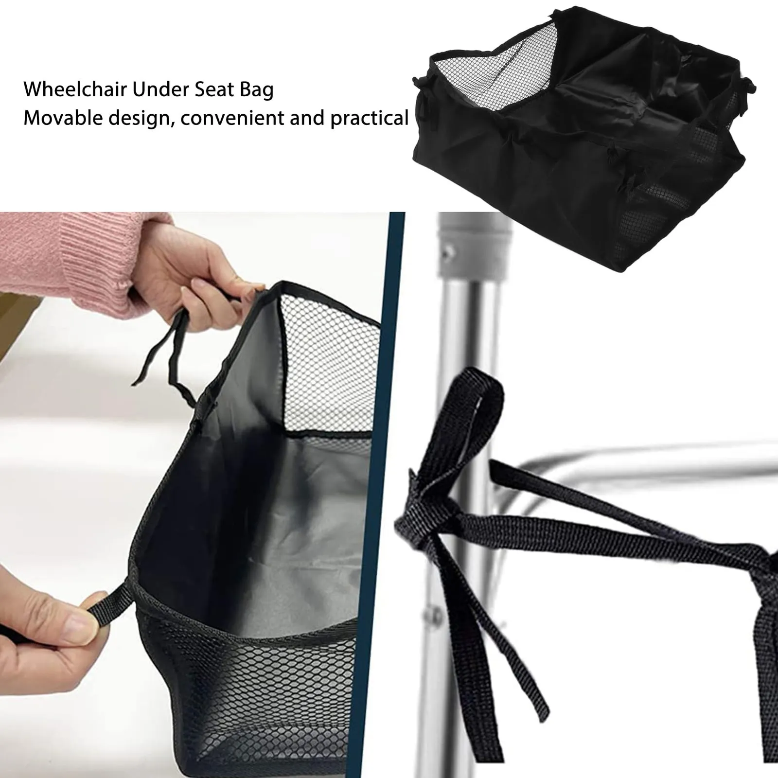 5.複数の用途: この収納バッグは車椅子に使用するだけでなく、他のシートクッションに取り付けて使用することもでき、軽量で通気性があります。