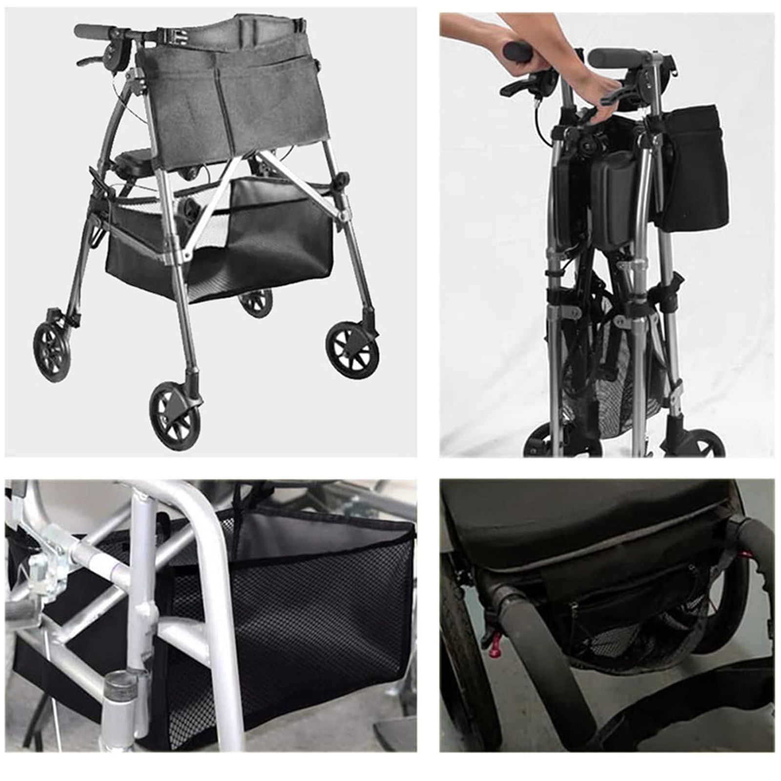 車椅子用バッグ:この収納バッグは車椅子用に設計されており、車椅子の座席の下に簡単に設置でき、持ち運び可能で省スペースです。