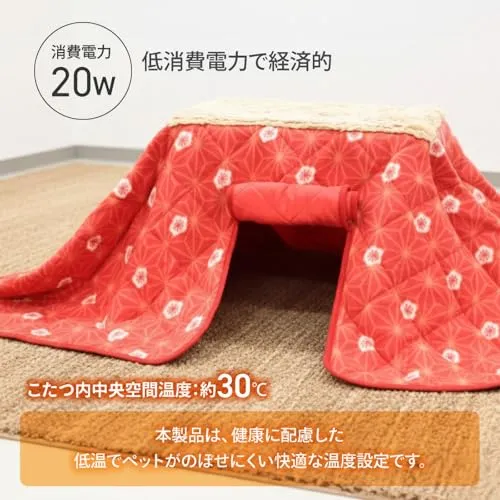 犬猫用 こたつ コタツ ペット用 ぽかぽか あったか 暖房器具 イヌ ネコ 室内 ヒーター カーペット 寒さ対策 スリット窓 布団付き キルティング加工 安全装置付き 中間スイッチ コードカバー いたずら対策 ヒーター保護網n