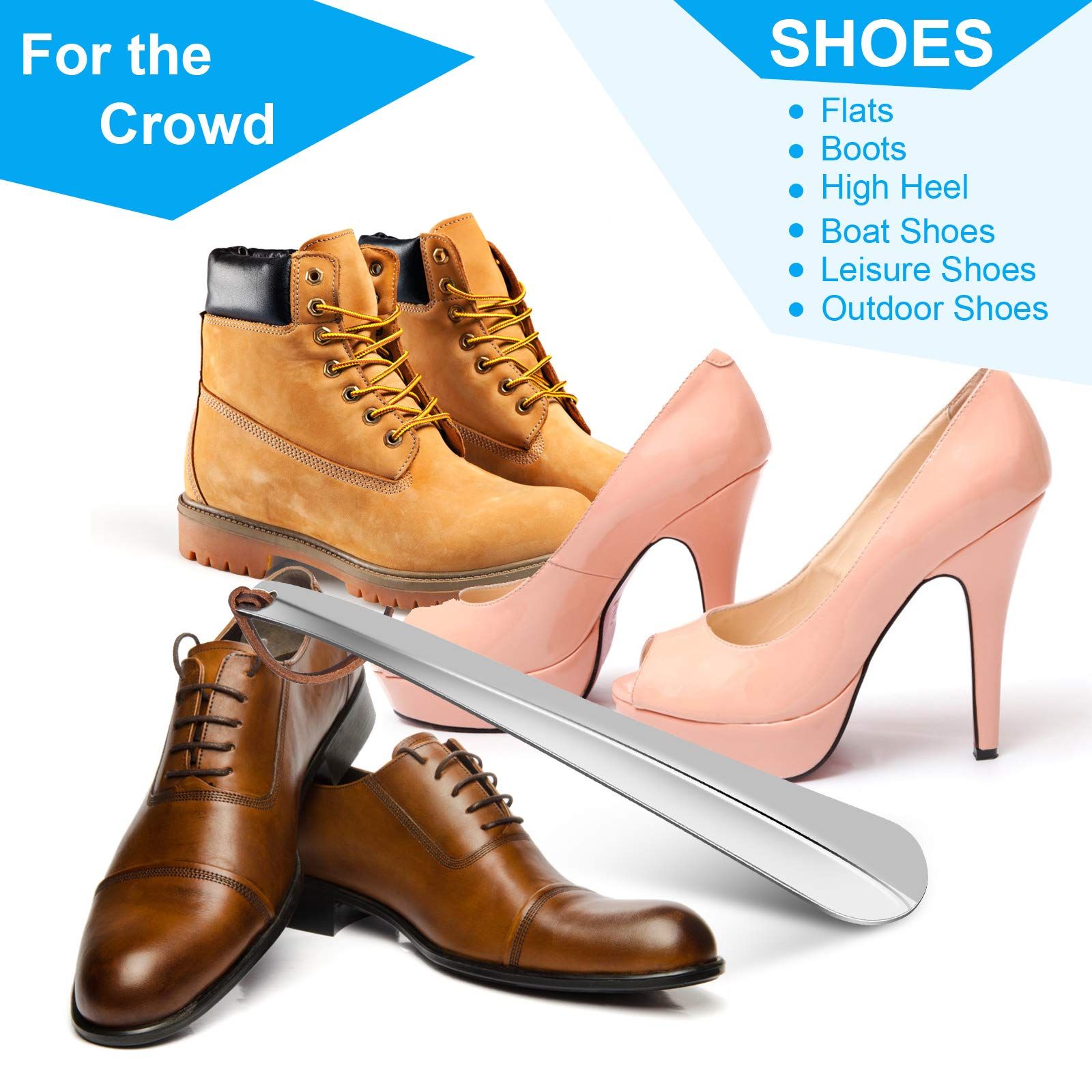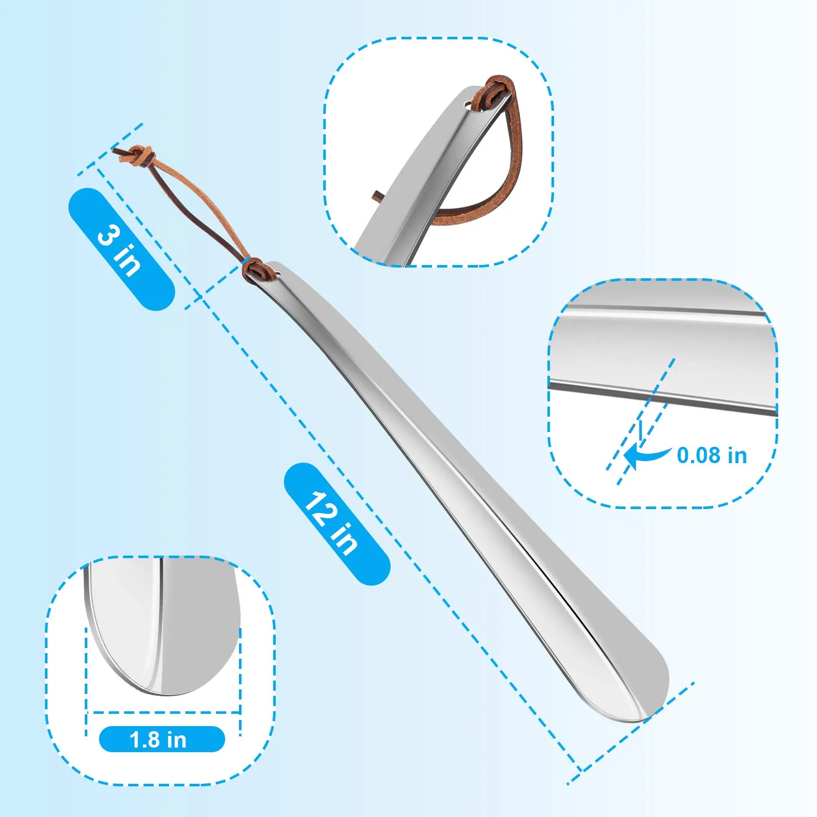 ONEKOO 靴べら 長さ12インチ プレミアムステンレススチール靴べら 高齢者用靴べら 妊婦用靴べら 男性用ロングハンドル靴べら 子供または大人用の金属製靴べら, シルバー, 12*1.8*0.08 Inch (L*W*H)