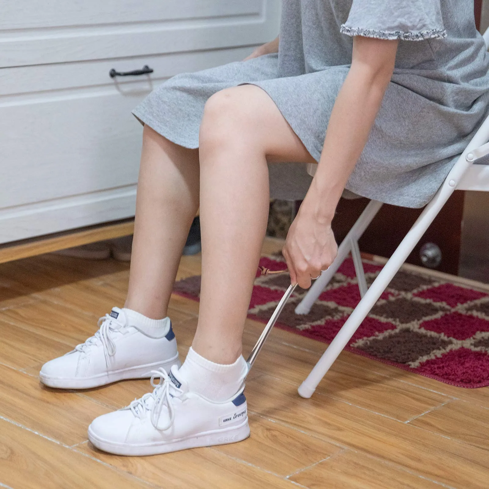 【かがみを減らす】: 長さ12インチの靴べらは、靴を履くのに便利で、かがみを減らし、背中の痛みや膝の痛みを和らげます。