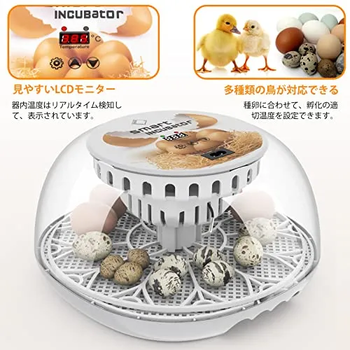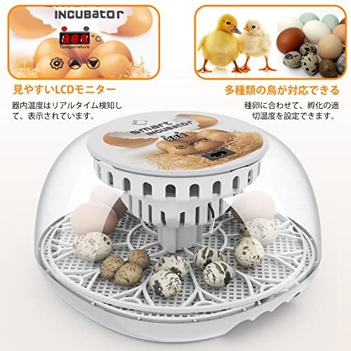 LifeBasis 自動孵卵器 インキュベーター 鳥類専用ふ卵器 自動転卵式 孵化器24個入卵OKヒヨコ生まれ 子供教育用 大容量 自動温度制御 湿度保持 デジタル表示 鶏卵 アヒル うずら 家庭用 鳥類の卵を人工孵化実現 トn