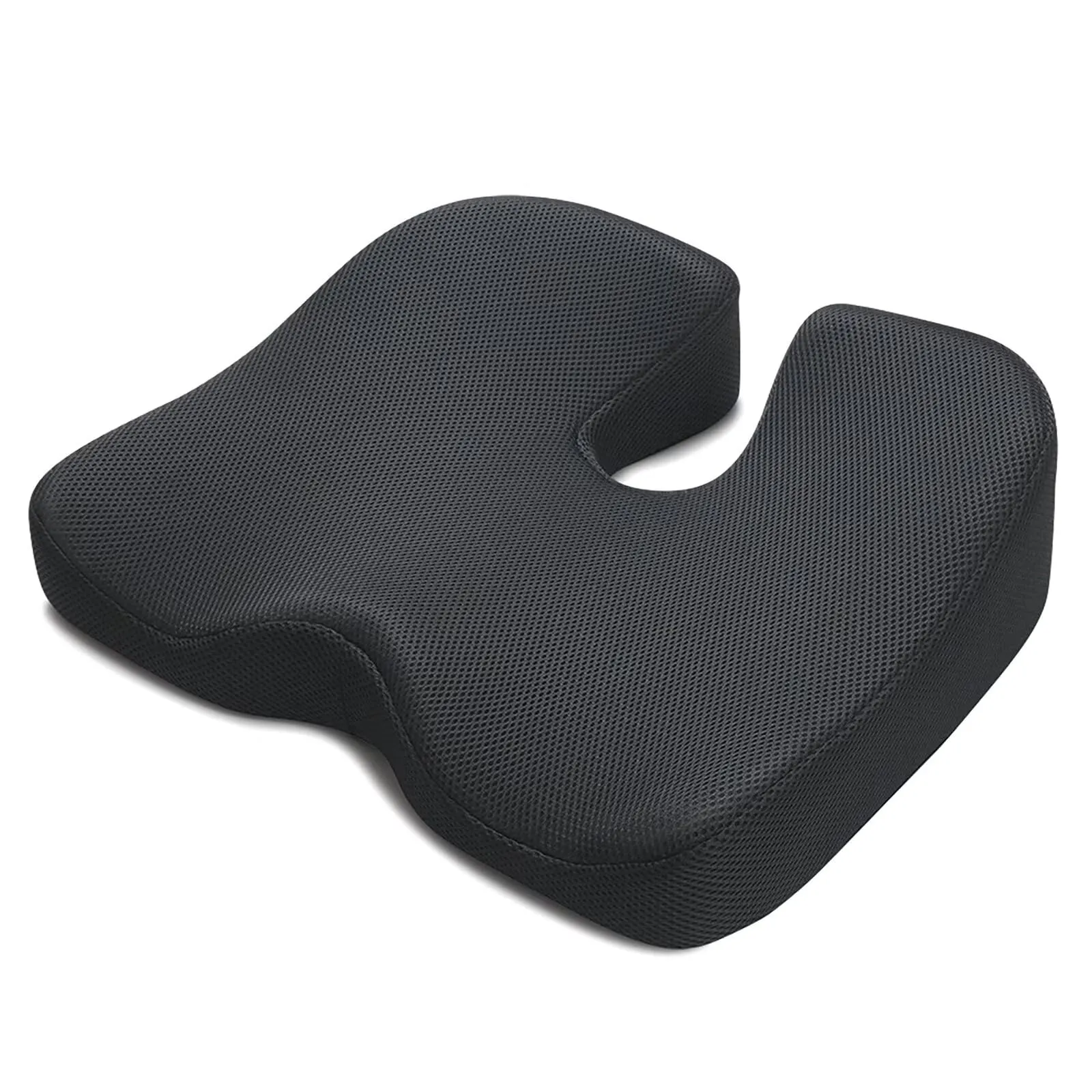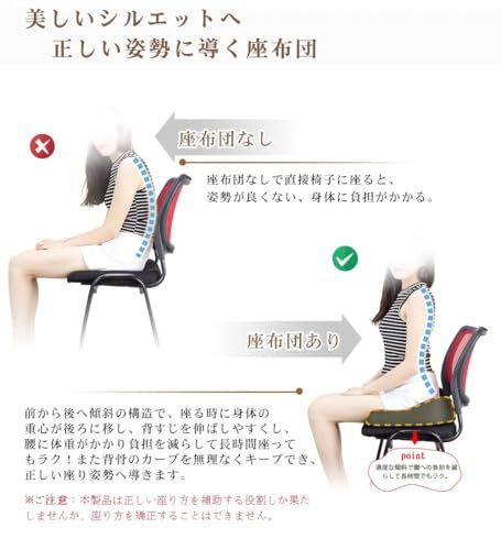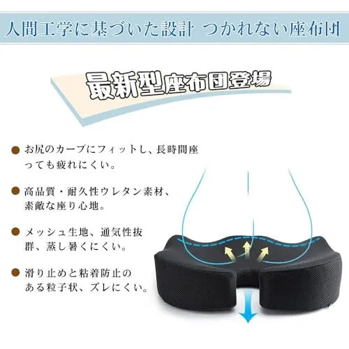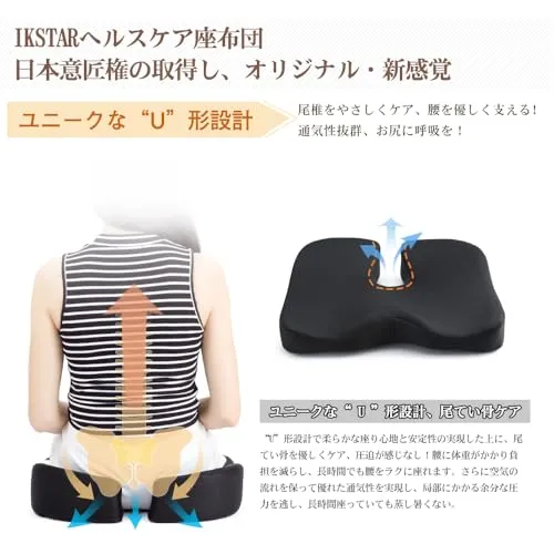 【後端はU字型デザイン】 ユニークなU型構造で尾てい骨など弱い部位を避け、従来のクッションよりもたらす尾椎のあっぱく感という欠点を改良した。座った姿勢から尾骨にかかる圧力を軽減し、 尾てい骨を優しくケアし、座り心地良いです。また、この独自の設計により、クッションの通気性が良くなり、長時間座っていても蒸れにくくなります。