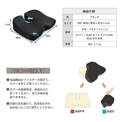 【製品仕様】サイズ:(約)縦38x横45x厚さ4-11cm 素材:中材:ポリウレタン(高品質の低反発ウレタン) カバー:表面/ポリエステル100%(通気メッシュ素材) 裏面:PVC素材 (滑り止めと粘着防止の粒子付き)。 ご注意:ご購入の前に必ず商品のサイズやカラーなどの詳細をよく確認してからご注文ください。低反発クッションを初めてお使いになる場合、低反発素材の感触に慣れるまで1-2週間かかることがあります。