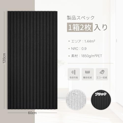 高密度吸音パネル 120x60cm?2枚セット?約1.44? ダブルレイヤー複合吸音材 壁 賃貸 剥がせる 防音ボード ウォールパネル 遮音材 保温 難燃 インテリア 部屋装飾 騒音対策 吸音ボード おしゃれ 部屋用 オフィス ピアノ室 楽器練習室 録音★tm