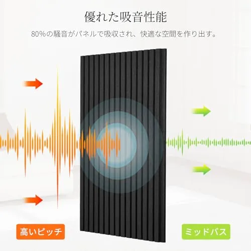 さまざまなシーンで活躍:この吸音材は、楽器演奏室、レコーディングスタジオ、オフィス、ピアノ室など、音の反響や騒音対策が重要な場所に最適です。優れた吸音性能により、会話や音楽の録音時にご使用いただけます。オフィスや会議室での騒音対策にも最適で、集中力を高める静かな環境を作り出します。リビングルームや寝室に設置することで、リラックスできる静かな環境を提供します。