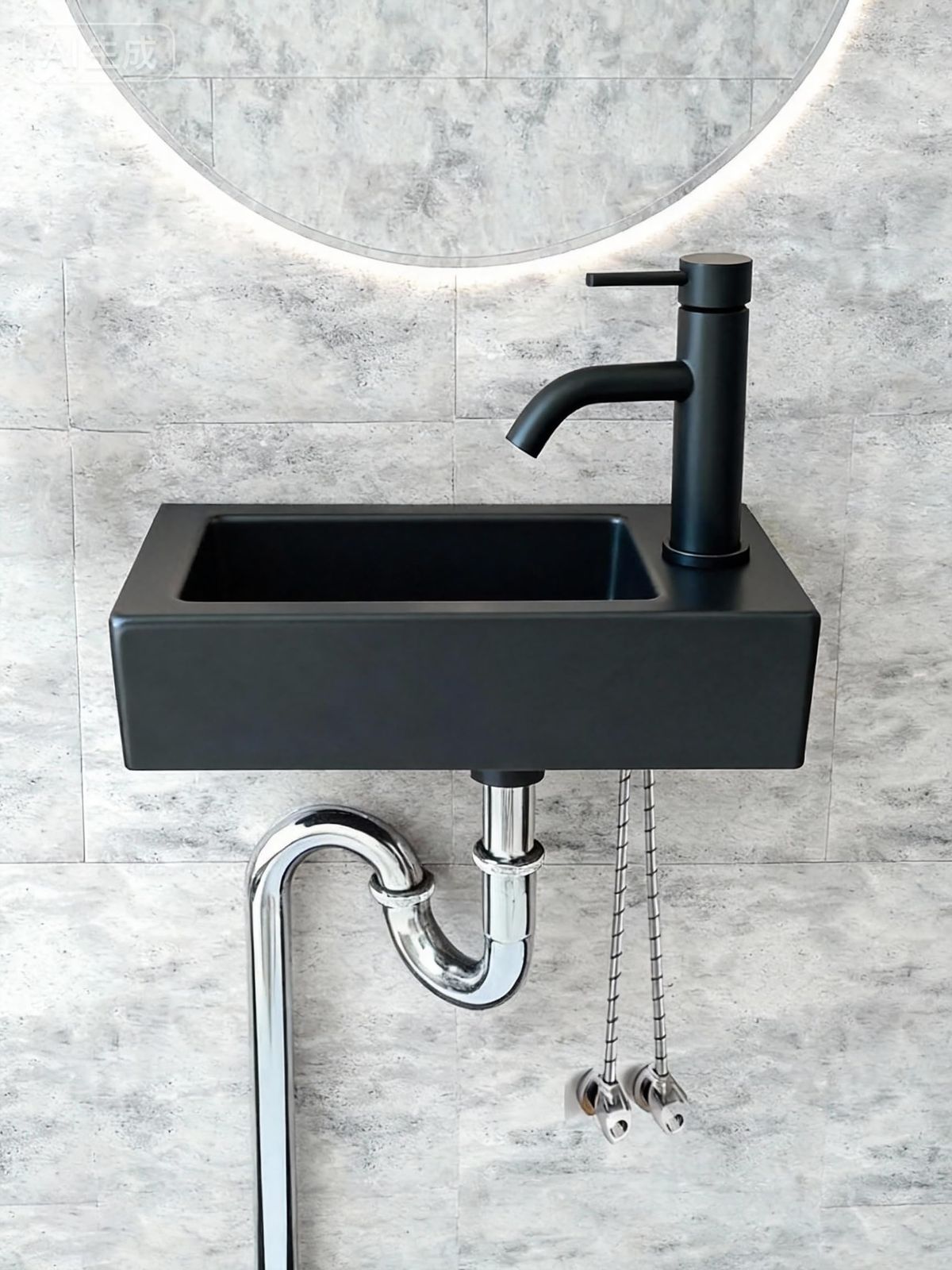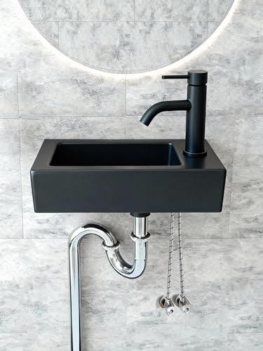 洗面ボール 壁掛け 36.5*18*9cm 手洗器セット 小型 おしゃれ 手洗いボウル コンパクト 洗面台 陶器 (黒い(右側))★tm