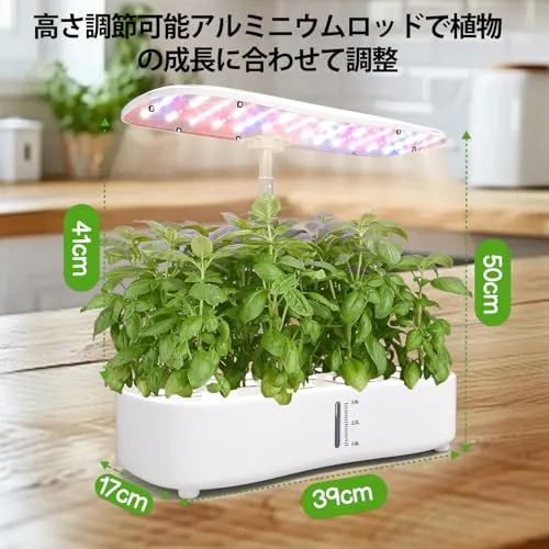高さ調整可能で室内栽培に最適:植物の成長に合わせて高さを調整可能なLEDライトを搭載。均一な光を確保し、室内での水耕栽培をサポート。取り外し可能なライトポールでメンテナンスも簡単。大葉やハーブの栽培にも最適です
