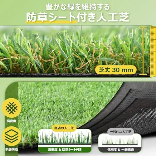 人工芝 ロール 1mx10m リアル感 芝丈30mm 高耐久 透水タイプ 防草シート 24本ピン付き フレッシュグリーン (1×10m)CH