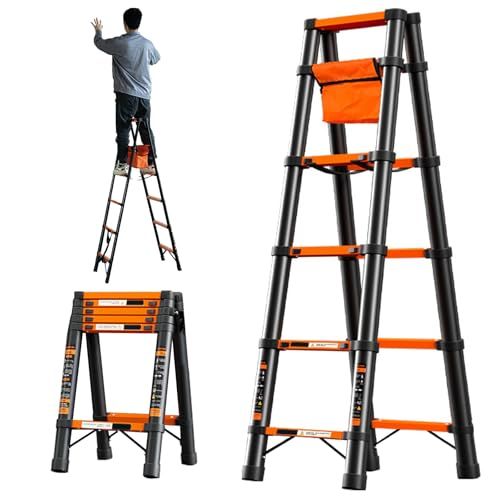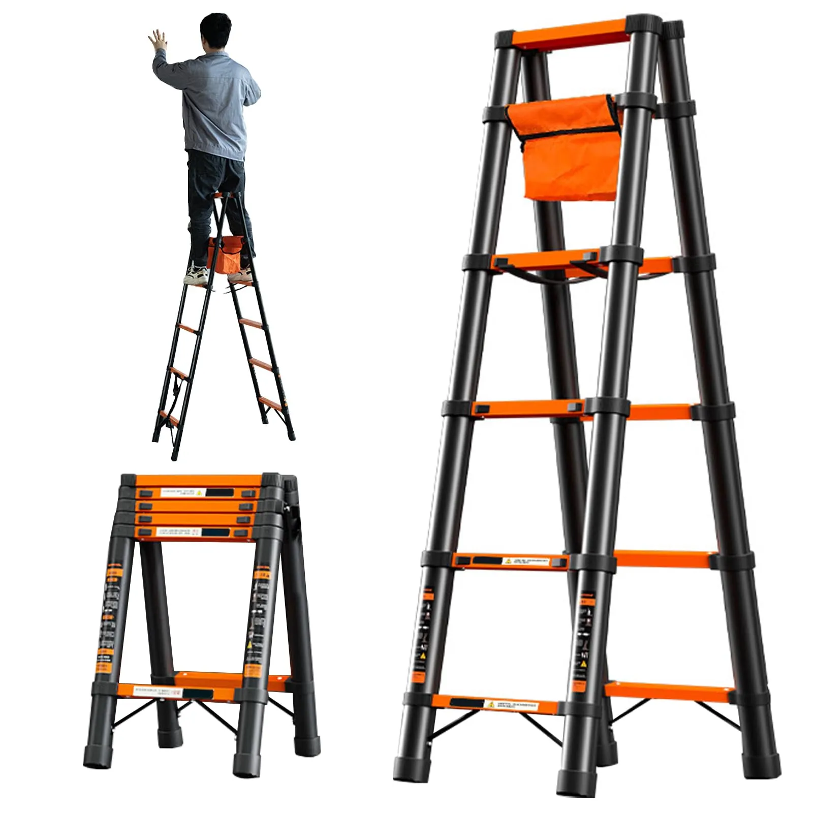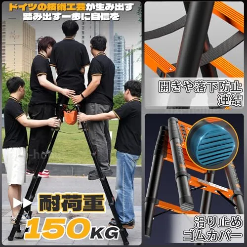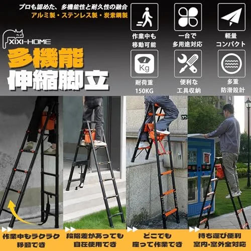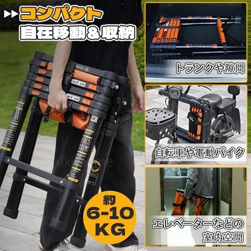 伸縮はしご 伸縮脚立 耐荷重150KG コンパクト 軽量 アルミ製 自動ロック 自在移動 滑り止め付き ツールバッグ付 折りたたみ 収納便利 持ち運び便利 室内 室外 家庭用 業務用 作業so