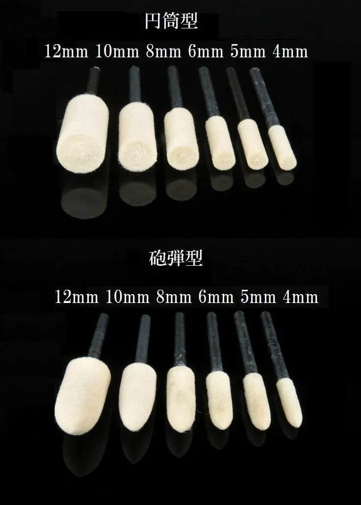 BIG HAL COM 羊毛 フェルト バフ 3mm 軸 ウールバフ 鏡面 研磨 や 金属 磨き 仕上げ 円筒 砲弾 型 24本 セット
