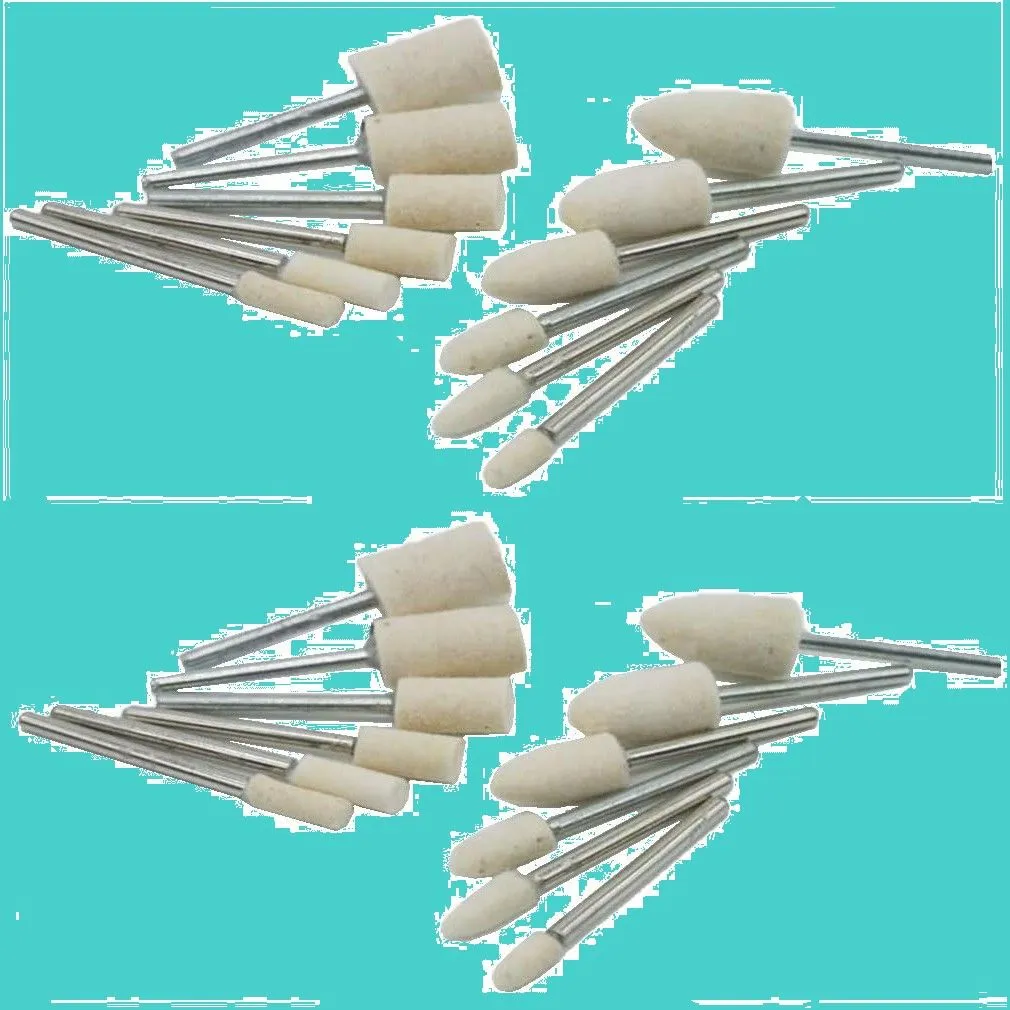 鏡面 研磨 加工 用の24本 セットの フェルトパフ です。 柔らかい 羊毛 を 高 密度 に 圧縮 したバフです。 金属 非鉄金属 貴金属 などの 艶出し や 光沢 出し鏡面 仕上げ 用です。