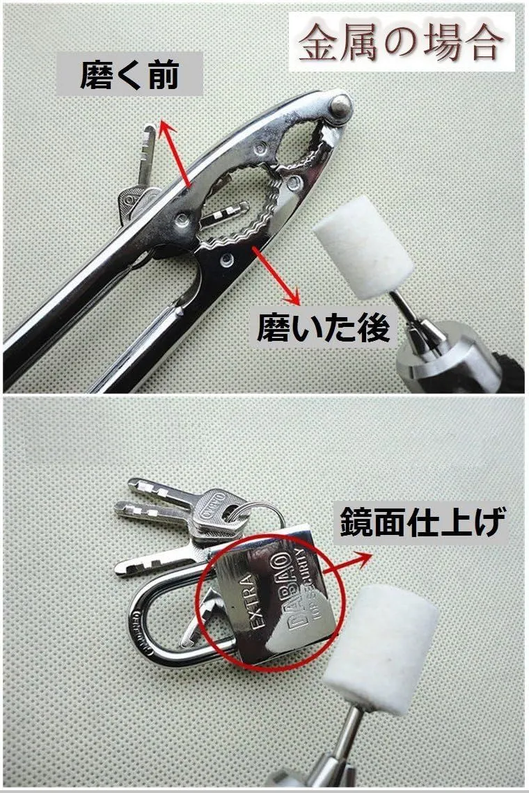 【セット内容】円筒型 4mm × 2本 5mm ×2本 6mm ×2本 8mm ×2本 10mm ×2本 12mm×2本 円筒型4mm×2本 5mm×2本 6mm×2本 8mm×2本 10mm×2本 12mm×2本 艶出しや 光沢 が出せる高密度 羊毛 圧縮フェルトパフ 24本 セット です。金属、非鉄金属、貴金属などの鏡面仕上げにお使いください。上質の羊毛を 高密度 に圧縮しています。 ソフトタイプに樹脂を含浸させ硬くしたもので、研磨剤のくいこみが少なく硬い材料のツヤ出しに適しています。研磨、艶出しには 研磨材 の使用をお勧めします。マイクロリューター エアーリューター エアードリル 等でご使用ください。 最後までご確認頂き誠にありがとうございました。 上記をご確認頂き、ご購入いただけましたら幸いです。 何かご不明な点がございましたらお気軽にメッセージからお問い合わせ下さい。