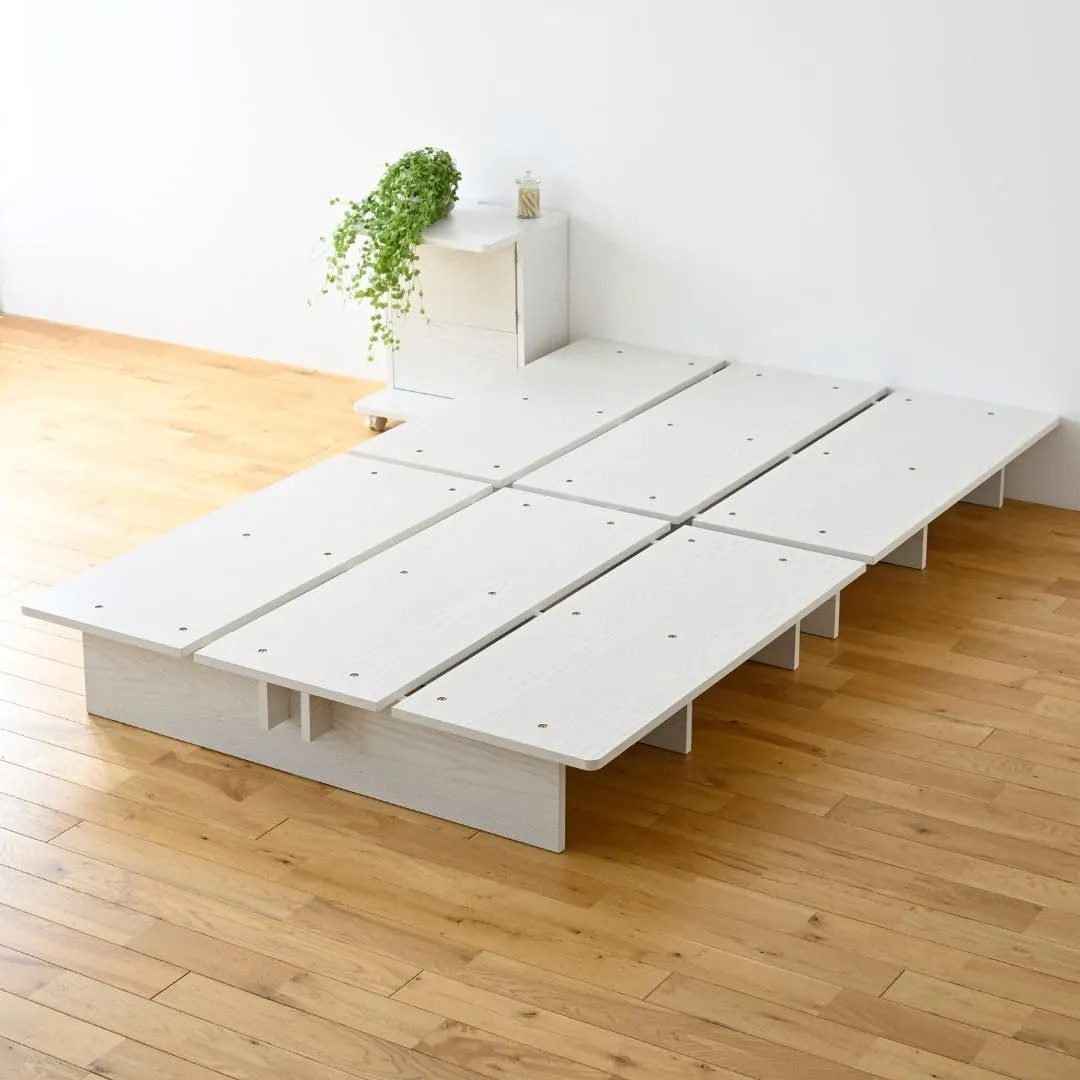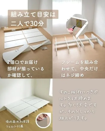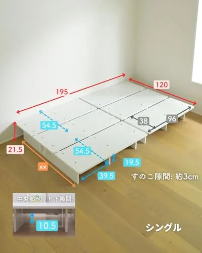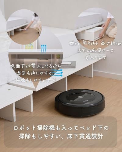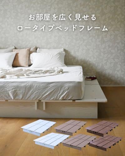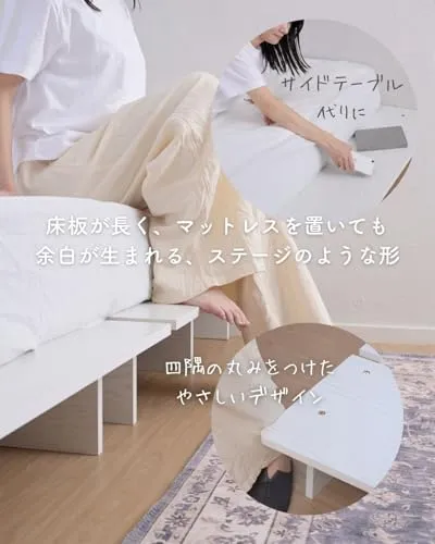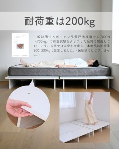 [山善] ベッド シングル 角が丸い お掃除ロボット対応 掃除がしやすい 幅120×長さ195×高さ21.5cm フレームのみ 頑丈 耐荷重200kg ローベッド ステージベッド すのこ 木製 組み立てシンプル ホワイト(木目柄) SSB-1200S(WHso