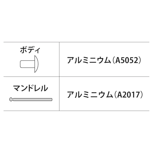 ●マンドレルもボディもアルミニウム製の軽量ブラインドリベット