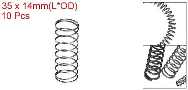 寸法:10個入り圧縮スプリングセット。外径14mm、線径0.8mm、自由長35mm。