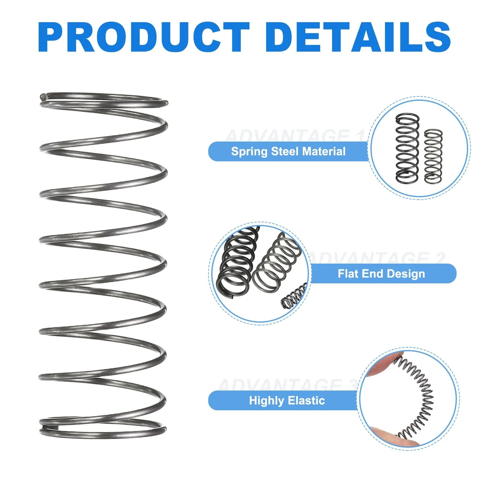 材質:圧縮スプリングはスプリング鋼製で、耐摩耗性、耐久性、耐腐食性、耐熱性、高弾性を備えています。錆びにくく、機械的特性に優れ、長期間使用可能です。