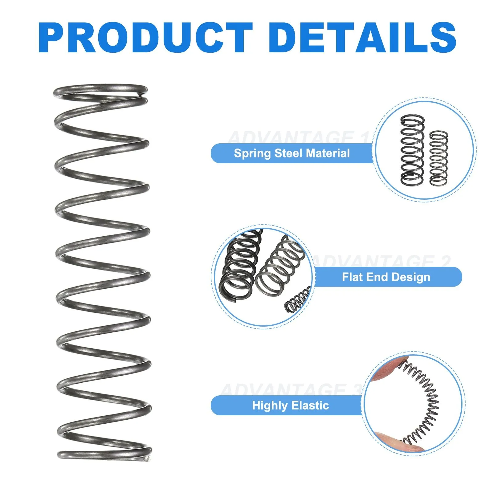 材質:圧縮コイルスプリングはスプリング鋼製で、耐磨耗性、耐久性、耐腐食性、耐高温性、高弾性を備えています。錆びにくく、機械的特性に優れ、長期間使用可能です。