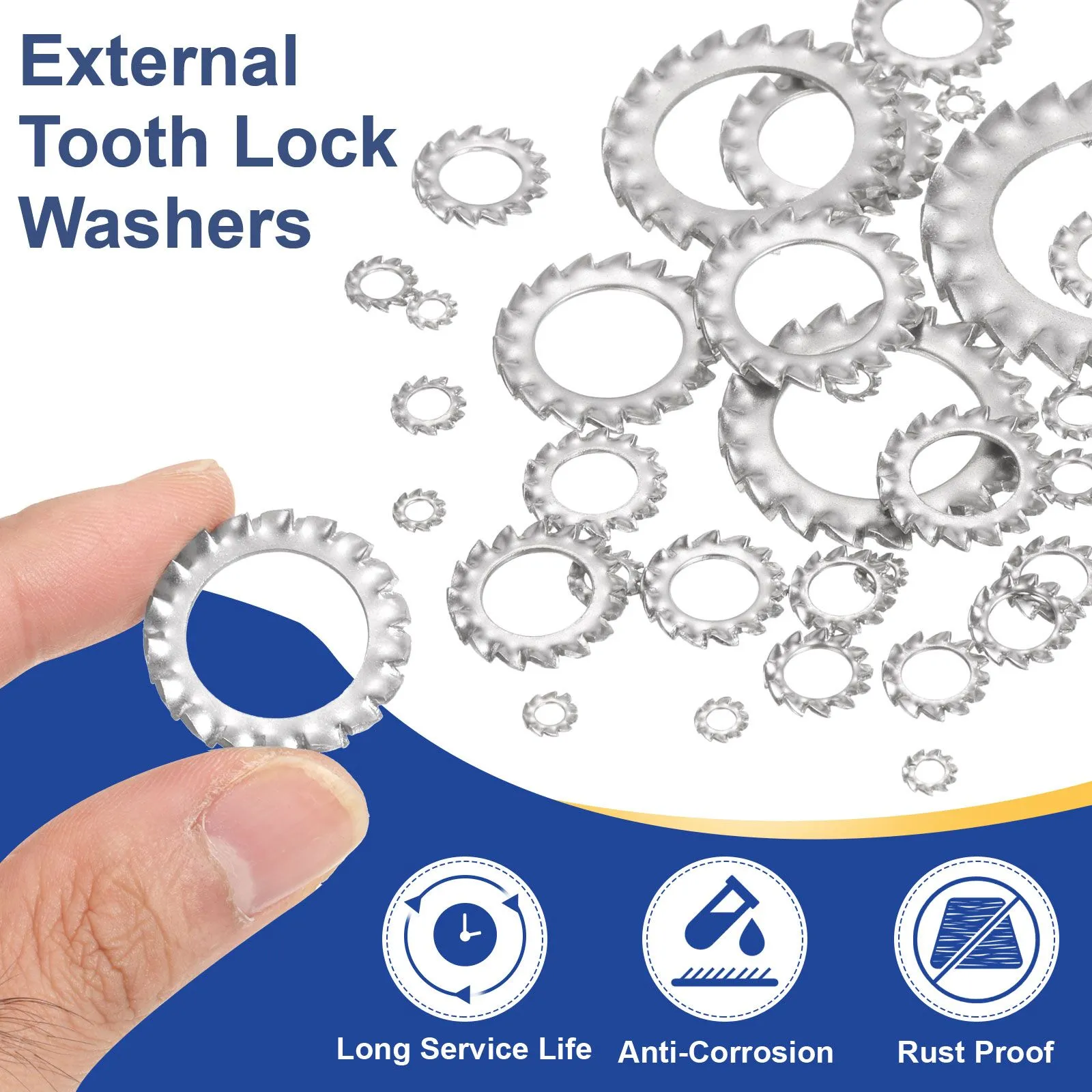 uxcell 500個 304ステンレススチール 外歯座金 M3スターロッ クワッシャー 鋸歯状ワッシャー ボルト用 機械設備ファスナー シルバー