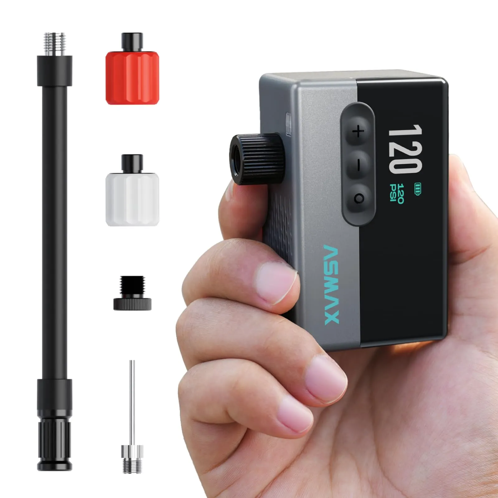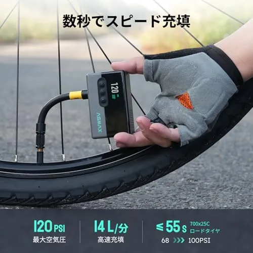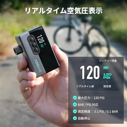 ASMAX T30 自転車 空気入れ 電動 120PSI 自転車エアポンプ タイヤ空気圧検知 ロードバイク携帯電動ポンプ 小型 コンパクト自動停止 米式/英式/仏式 全バルブ対応 LEDライト付きso