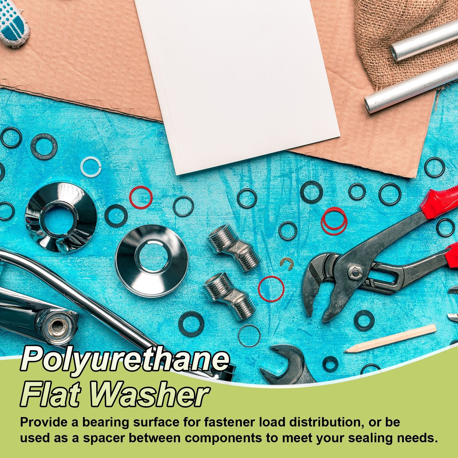 サイズ&パッケージ - 材質:ポリウレタン;外径:26mm/1インチ;内径:14mm/9/16インチ;厚さ:2mm/1/16インチ;内容量:10枚×PU平座金。