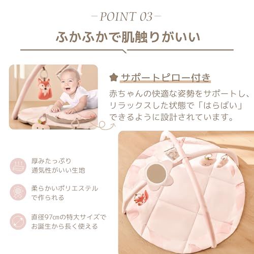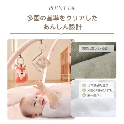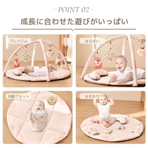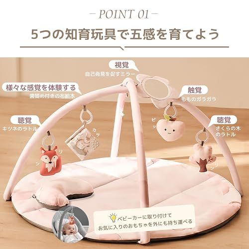 Fortella ベビージム プレイジム プレイマット 北欧風 おしゃれ 五感刺激 赤ちゃん 新生児 0歳? 知育玩具 メリー おもちゃ 室内遊具 出産祝い プレゼント (ピンク)so