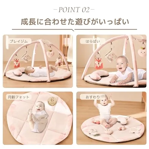 「新生児の必需品」Fortellaのベビージムで楽しいタミータイムをお過ごしください!感覚、運動、認知を刺激するさまざまなおもちゃで、赤ちゃんがいつでも楽しく盛り上げます。5つの吊り下げおもちゃとサポートピローががセットになっており、赤ちゃんが遊びながら学び、成長する過程で聴覚、触覚、手と目の協調、そして認知能力を発達させる設計です。