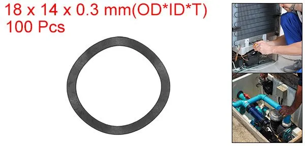 基本サイズ:全体サイズ:18 x 14 x 0.3 mm / 0.71インチ x 0.55インチ x 0.01インチ(外径x内径x厚さ); 高さ:1.6mm / 0.06インチ; 素材:黒アイアン素材; カラー:黒; パッケージ内容:100個 x ギザギザ弾性ガスケット