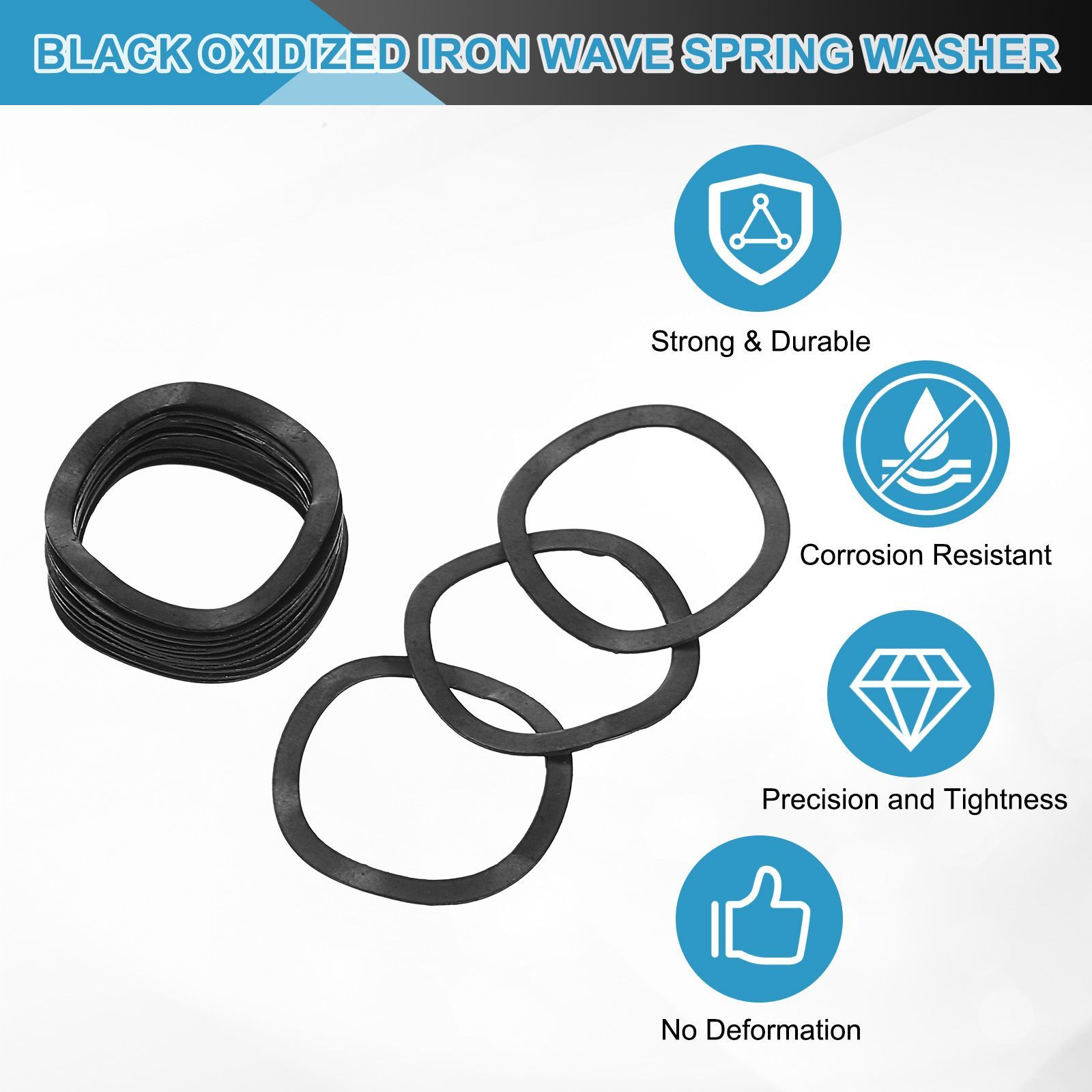 [良質な素材] - 良質な黒アイアン素材から作られたウェーブスプリングワッシャーは耐食性を提供し、軽量で錆や摩耗に強く、強度と精度を向上させます。