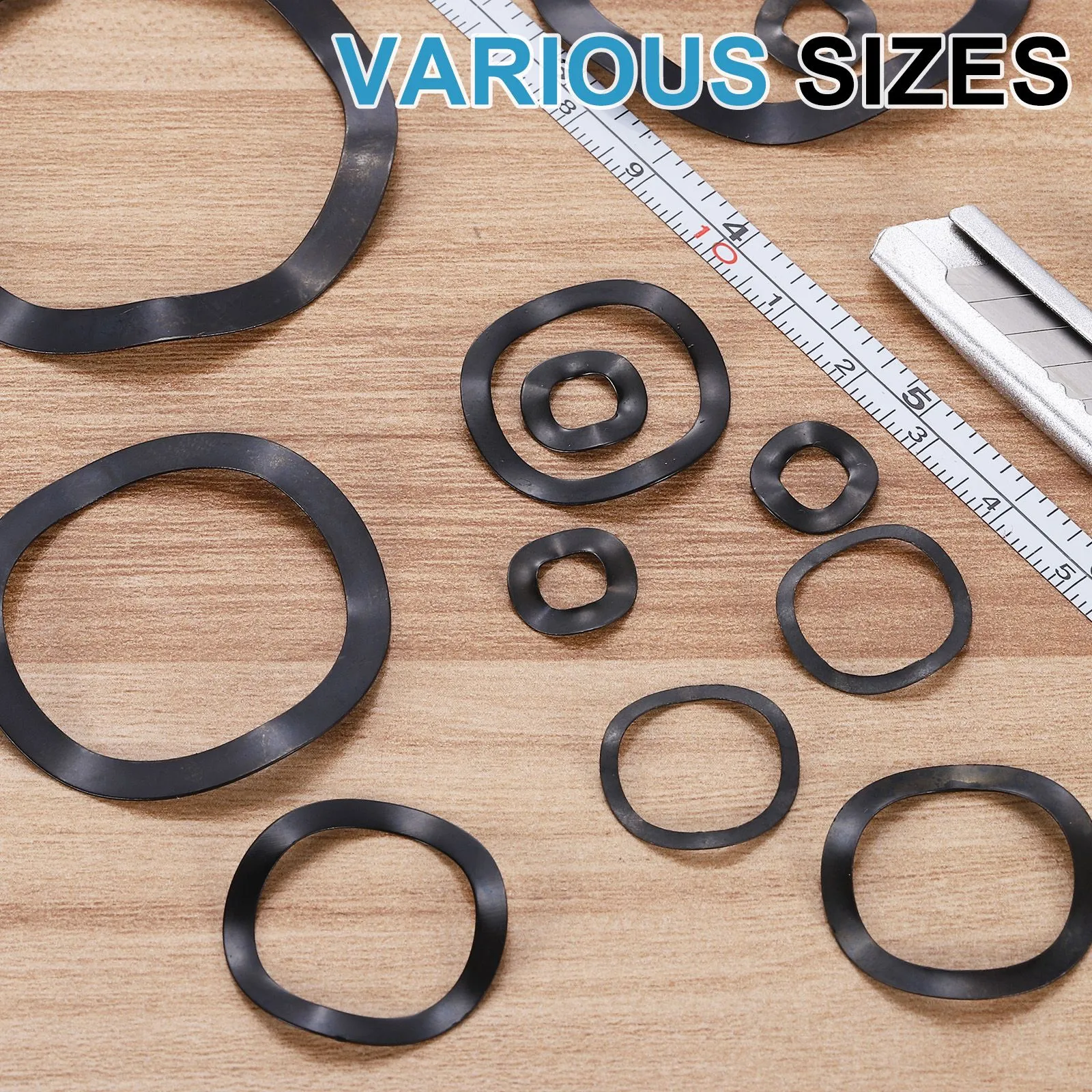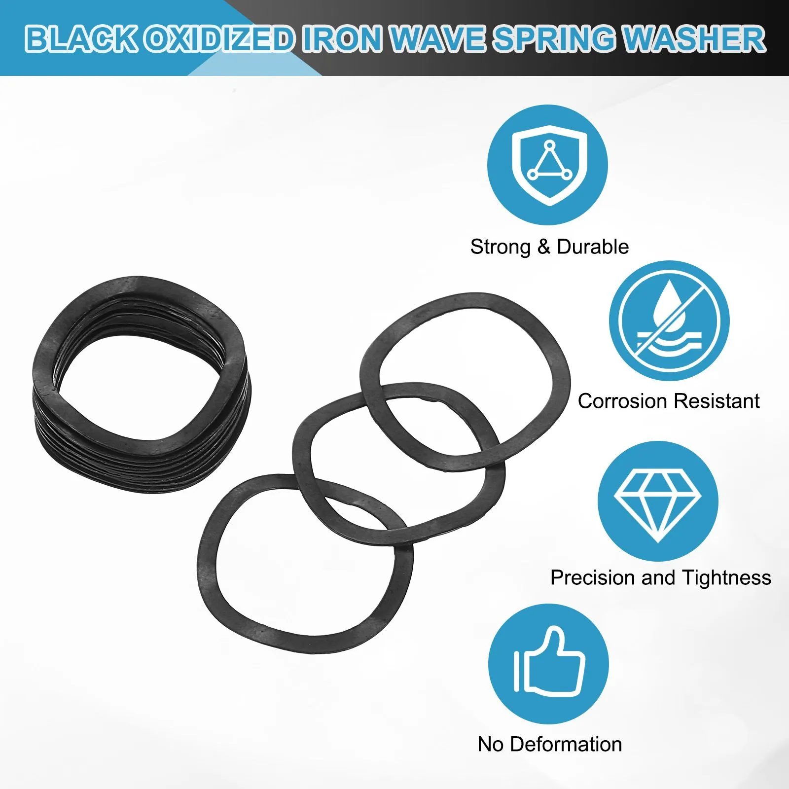 良質な素材:良質なアイアン黒素材から作られたウェーブスプリングワッシャーは耐食性を提供し、軽量で錆や摩耗に強く、強度と精度を向上させます