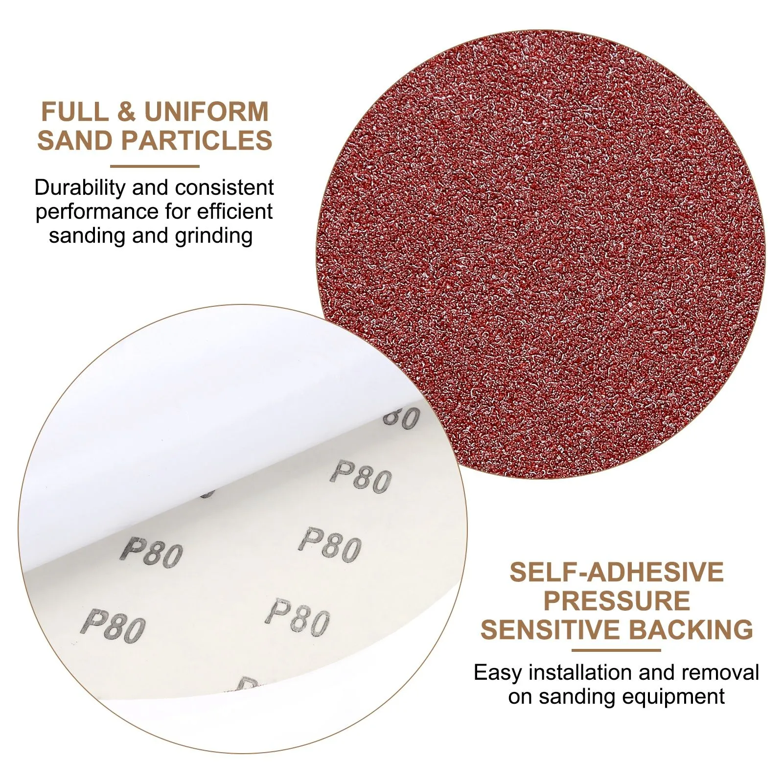 自己粘着圧敏性接着剤(PSA)バックは、研磨機器への簡単な取り付けと取り外しを可能にし、アプリケーションプロセス中の時間と労力を節約します。サンドペーパーは、操作中に剥がれることなく安全な接着を提供します。残留物のない機能により、表面を汚さずに簡単にクリーニングし、表面をきれいにします。
